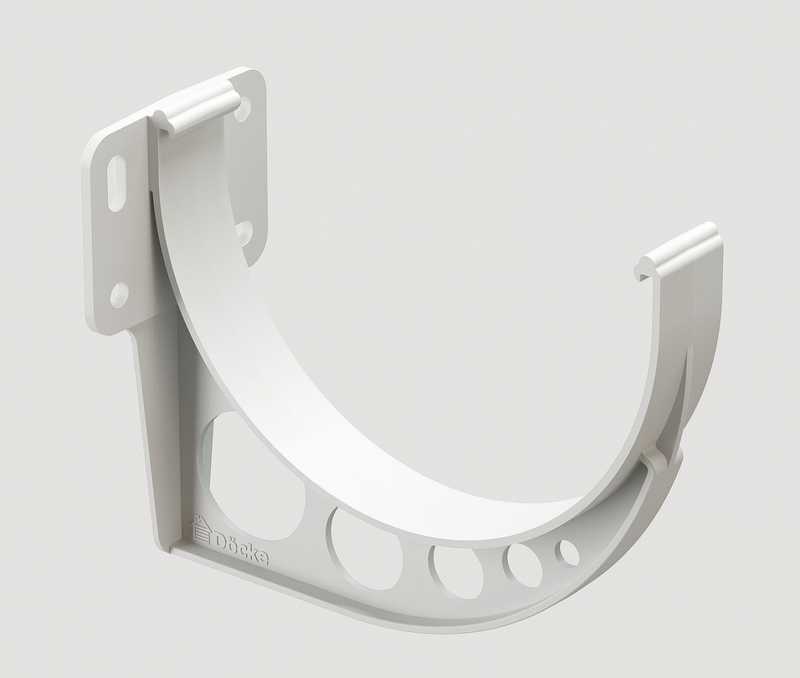 Предназначен для крепления желоба на кровлях с лобовой доской, либо в комплекте с удлинителем на кровлях без лобовой доски