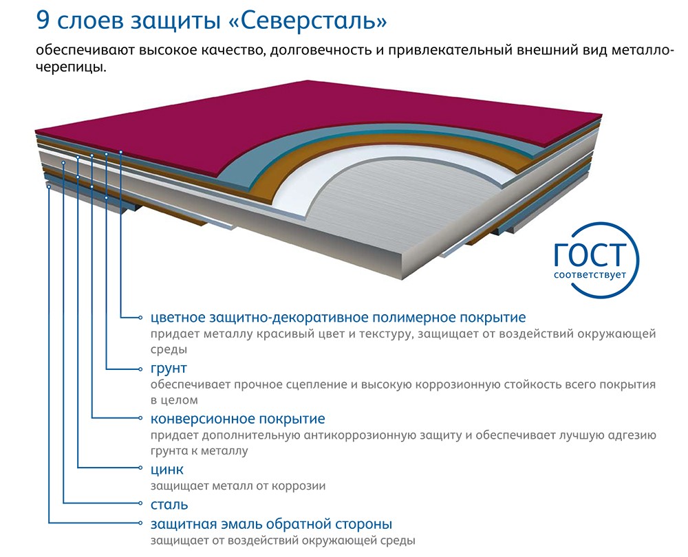 Металлочерепица Стальной Бархат (0.5) – экологичное и пожароустойчивое изделие с длительным сроком эксплуатации. Данный кровельный материал легко монтируется, не требует обслуживания или ремонта.