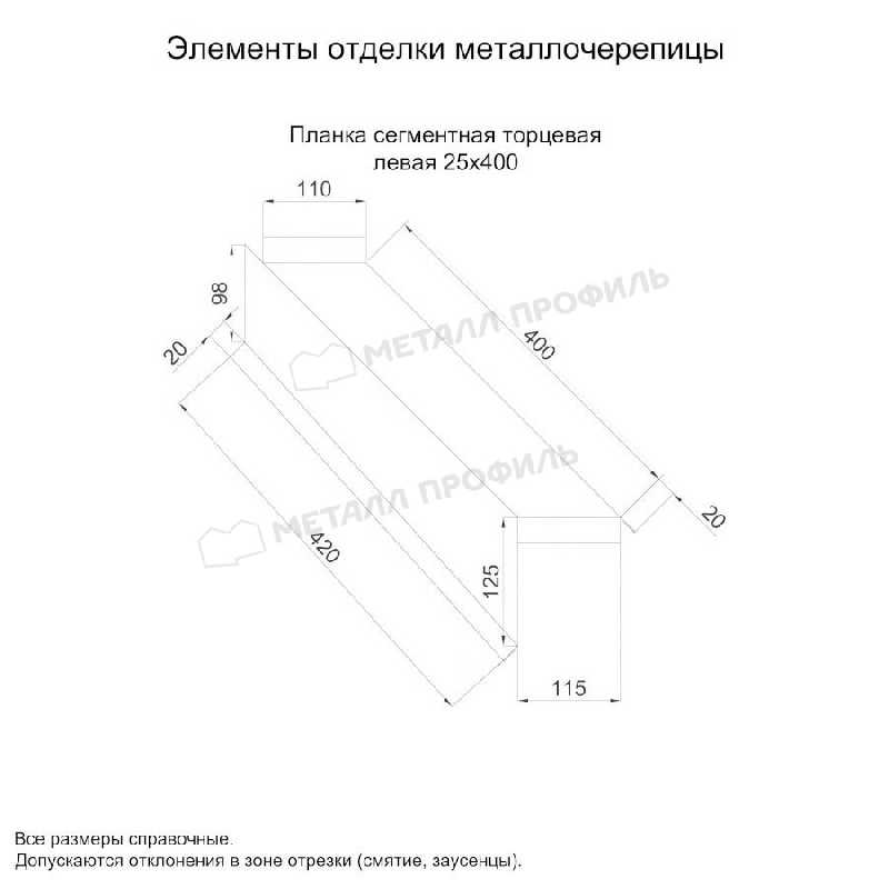 • Планка сегментная торцевая левая 400 мм (PURMAN-20-3005-0.5) не ржавеет.