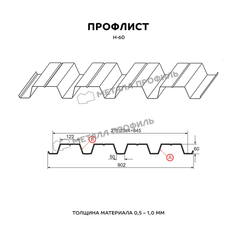 Профлист Металл Профиль Н-60 0,55 Цинк Бесцветный