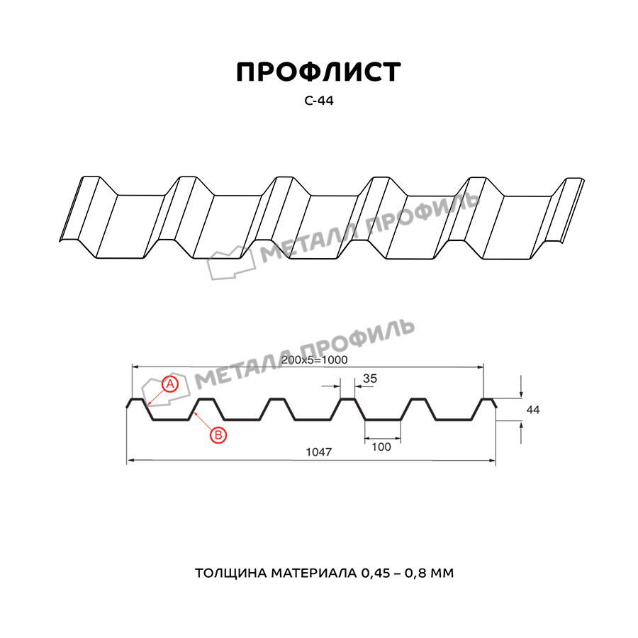 Профиль С-44 имеет толщину 0,5 мм, что обеспечивает прочность и долговечность конструкции.