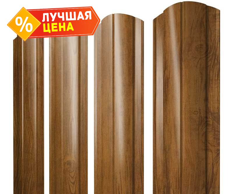 Штакетник Круглый фигурный Grand Line 0,45 Print-double Premium Golden Wood Golden Wood