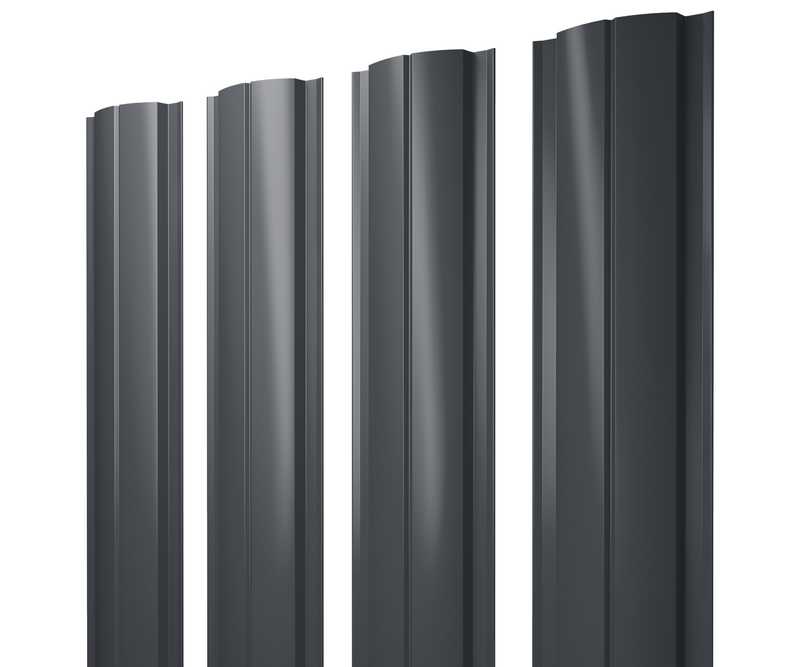 Штакетник Полукруглый Slim Grand Line 0,5 Quarzit lite RAL7024 Мокрый Асфальт