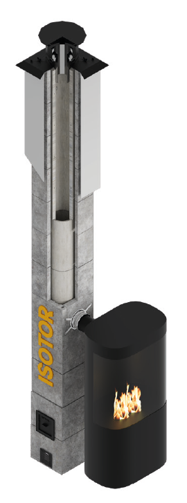 Модульный комплект дымохода ISOTOR, основание 3м, с дефлектором, без вентканала, диаметр 16 см, Schiedel